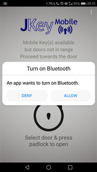 If your smart phone has not turn on Bluetooth toggle, you will see a hint "An app wants to turn on Bluetooth" and tap "allow" to enable Bluetooth.