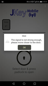 If your phone has received the mobile key but the corresponding electronic BLE door is not in range, you will see relevant hint in gray color on screen.
